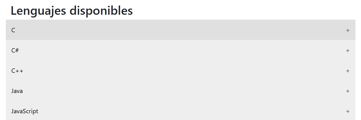 Crea una página Bootstrap donde uses un accordion para mostrar información de distintos lenguajes de programación: