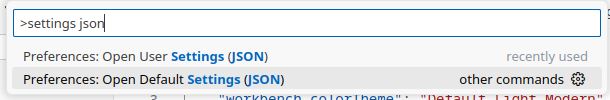 Ahora vamos a configurarlo para que esté continuamente revisando el código CSS del proyecto. Pulsamos F1 y escribimos settings.json en el cuadro que aparecerá. Elegimos Abrir configuración de usuario json.