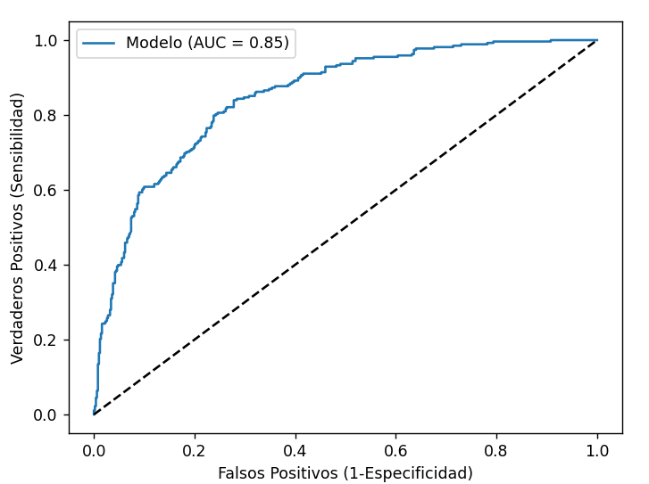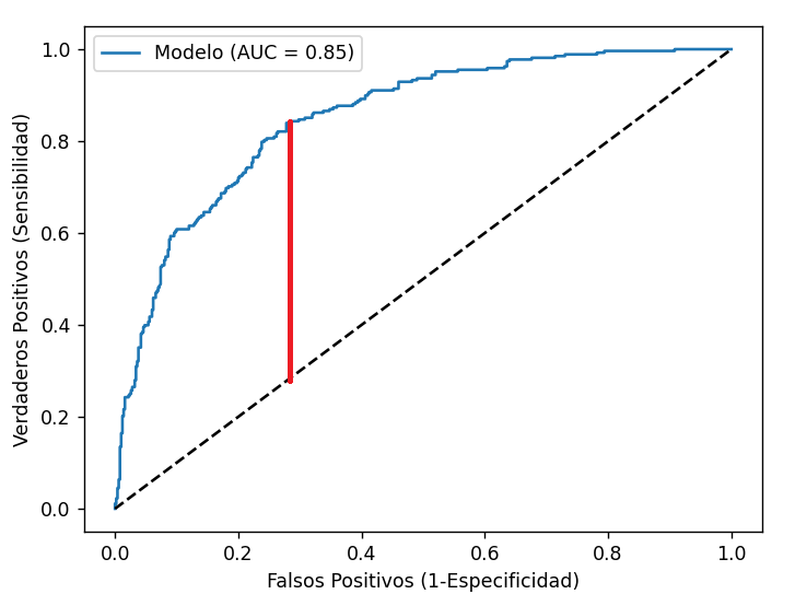 En este caso hemos empleado la función auc de sklearn.metrics en lugar de roc_auc_score como en el caso anterior. En realidad podemos emplear cualquiera de las dos: