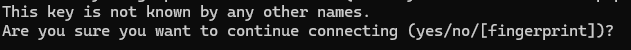 La primera vegada que et connectes, el client SSH (el teu ordinador) et preguntarà si confies en la empremta digital (*fingerprint) del servidor.